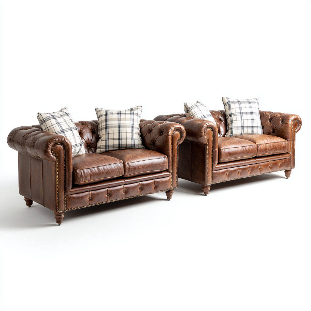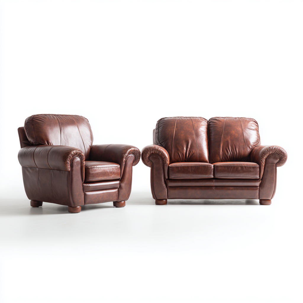 Set di divani - Pelle - 165x90x78 cm - Marrone - Stile classico elegante