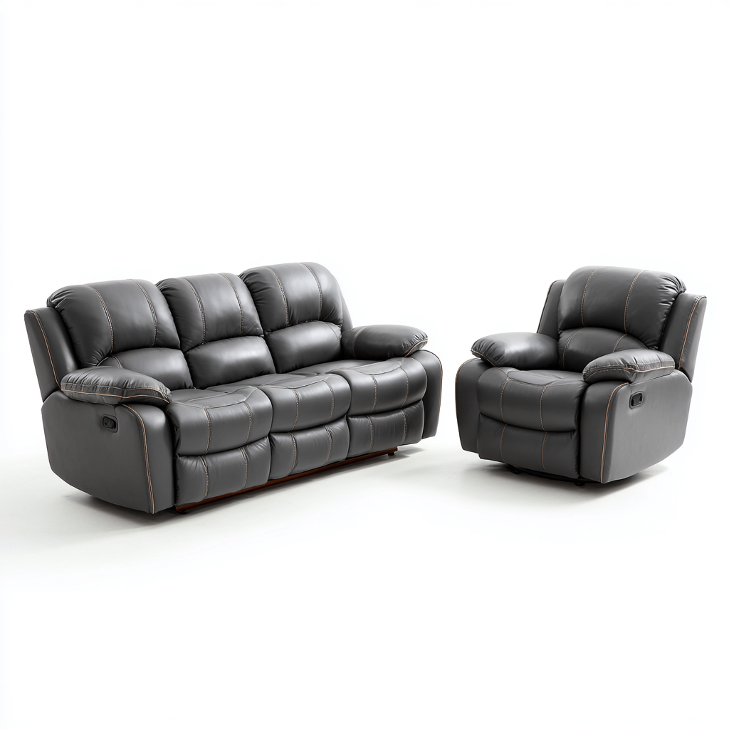 Set di divani-Pelle-215x96x100 cm-Grigio-Design moderno