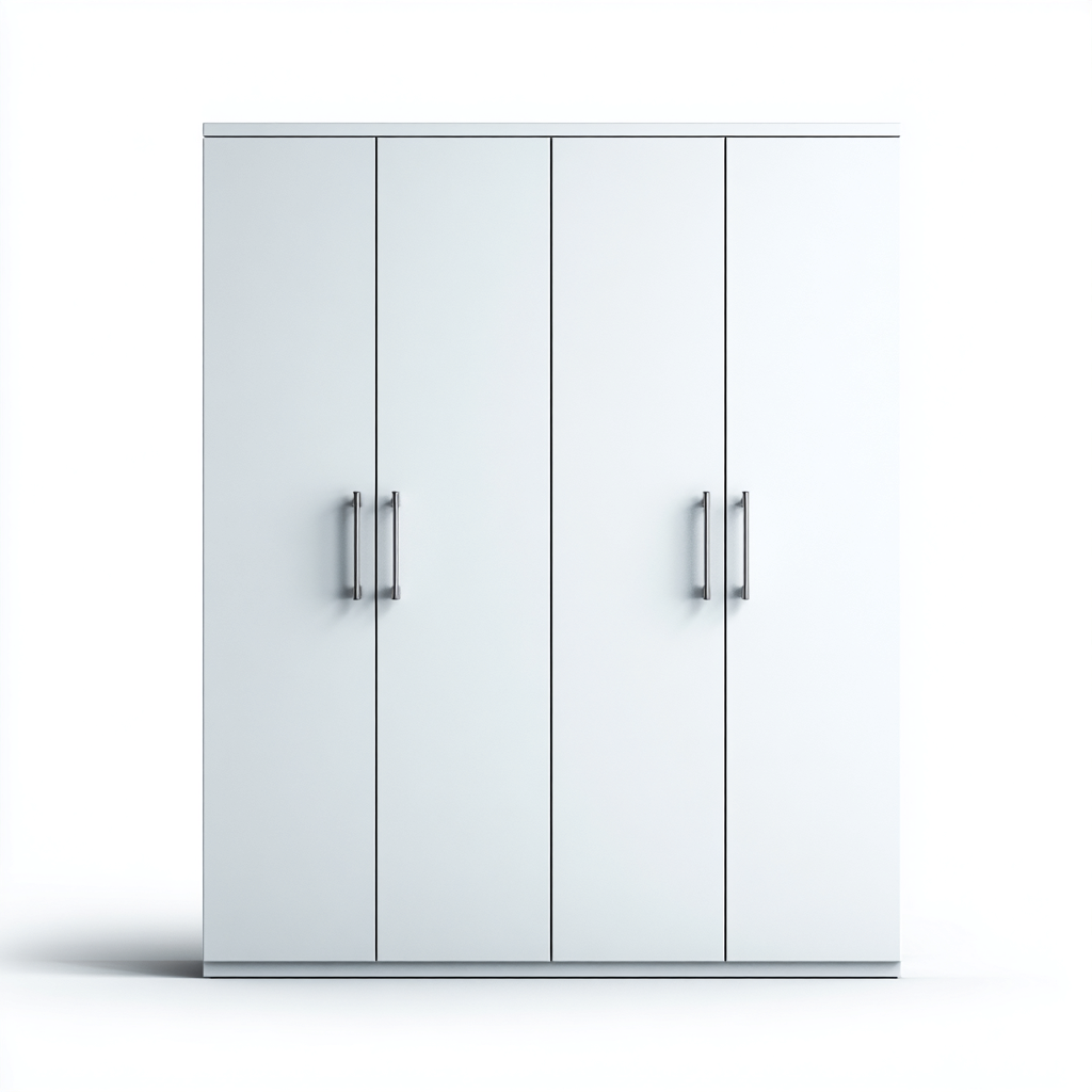 Armadio a 4 ante dal design essenziale, ideale per ambienti domestici moderni e minimalisti. La finitura bianca uniforme valorizza la luminosità della stanza e favorisce un aspetto ordinato, rendendolo adatto all'arredo della camera da letto.