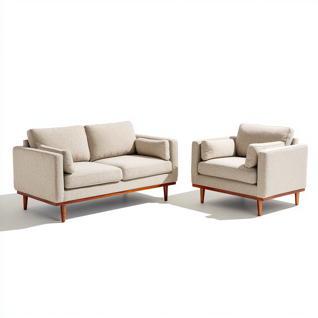 Questo set di divani è pensato per arredare il soggiorno con uno stile moderno e luminoso. La composizione include un divano e una poltrona, ideali per creare un ambiente accogliente e ben proporzionato per l'uso quotidiano.